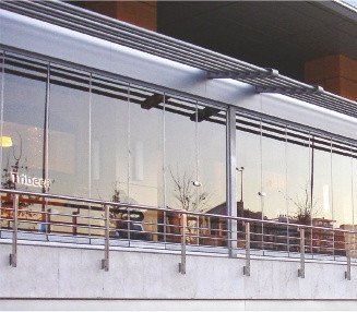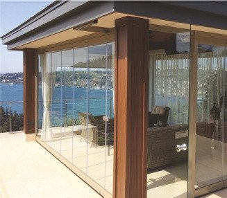 Zemin kılavuzu gerektirmeyen üstten askılı yapısıyla mekanları bölmeden güvenliğe alan, panoramik şıklığı mühendislikle birleştiren hareketli cam sistemi.